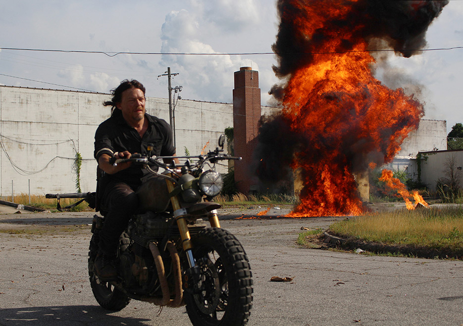 偵察隊を爆弾で一層し、同時にウォーカーたちを誘導する。ダリルを残して3人は去り、ダリルはバイクでウォーカーたちをアジトへと引きつける。