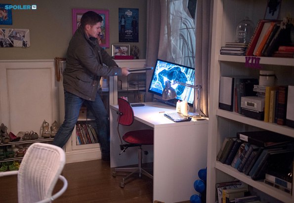 部屋の中にあるテレビやパソコン、スマートフォンなどWi-FI接続された機器に次々と乗り移るシルバー。ディーンはそれをことごとく破壊していく。