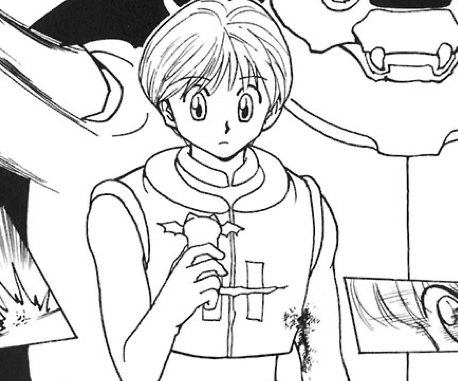 クロロがシャルに通話で命令を出して、操作の携帯をいじっているのはシャルの腕では?と考察されている。けど、この腕手首のあたりに腕より太い何かが描かれている。フツーに考えるならこれは服の袖だろう。けどシャルの衣装はノースリーブ、腕にアクセサリーの類もつけていない。体の他の部位が写っているようにはちょっと見えない。