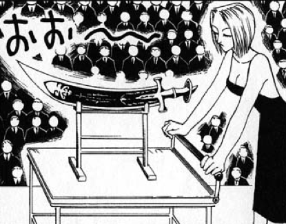 パクの原作初登場回は[hxh8]のNo.071「オークション開催!!」で、旅団がアジトにしていたヨークシンの廃ビルにて団員全員が集まっているシーンです。この時の作画は、キャラ設定が定まっていなかったのか結構ヒドくて、悪意で描いた松雪泰子のようです…。
