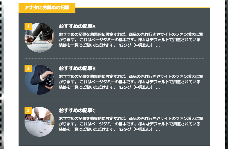 ここまでで「おすすめ記事一覧」自体は任意の場所に表示されるようになっています。