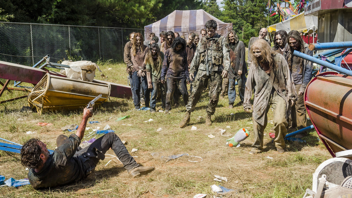ウォーカーに囲まれ銃で応戦するも、球切れ。ミショーンが駆け寄ったときには既にウォーカーたちが覆いかぶさり彼らのクチには鮮血したたる臓物がぶら下がっていた。