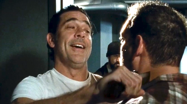 ニーガンはデイヴィッドに引き裂かれたTシャツの代わりをサシャに与え、彼女に語りかける。