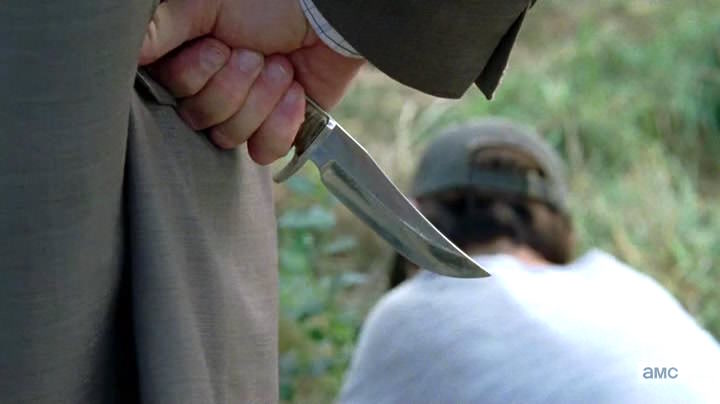 デイヴィッドを殺したナイフを床に置き「君にやる」とニーガン。