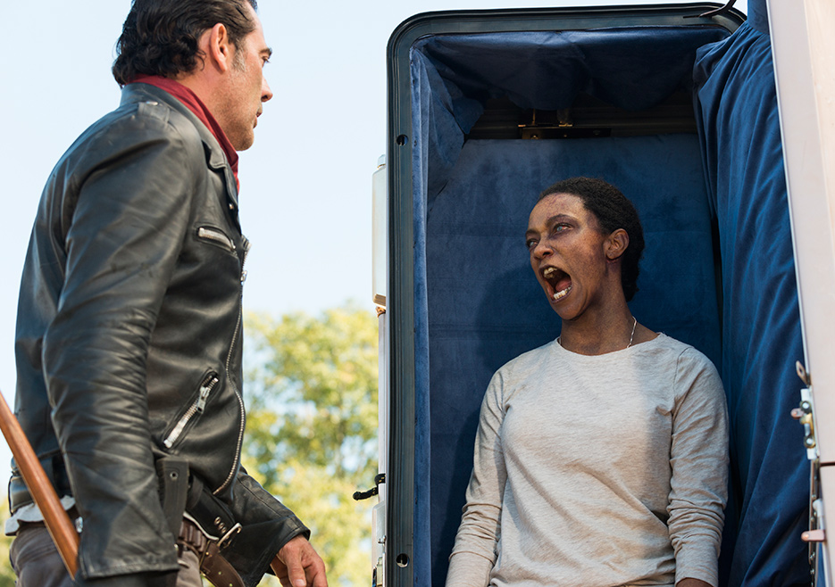 そこにニーガンがルシールを持って現れる。「ゴミ人間どもと組むなんて」とジェイディスたちを揶揄するニーガン。
