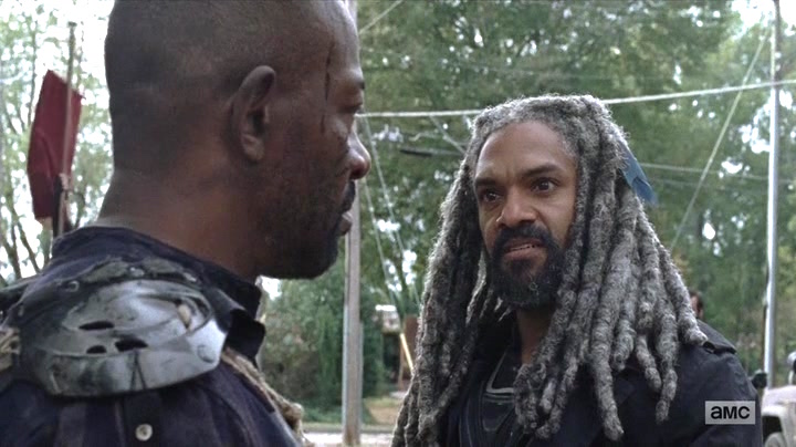 エゼエキエルは戦うのならば、王国の隊に加わり、リックたちの同盟と共に戦うよう諭し、モーガンもそれに加わる。