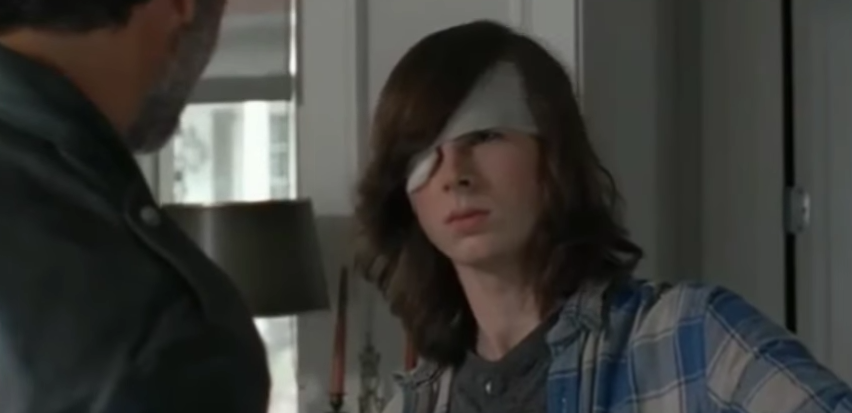 「薬を全部持っていかれる!」と銃を向けていた。リックは抵抗しないように諭すが、聞かないカール。ニーガンがカールの眼前に立ちようやくカールも矛を収める。しかし、これを逆手にとったニーガンは「銃を全部没収する」とアレクサンドリアにある全ての銃火器を奪い去ることに。