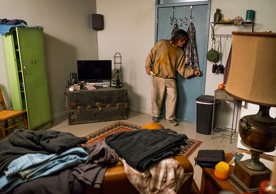 救世主に捕まっているダリルは、何者かの助けをうけて(第7話参照)独房から脱走。服と食料をうばい外へ出る。
