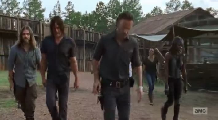 ミショーン、カール、ロジータ、タラを連れてヒルトップを訪れたリック。マギーと再会し戦う決意を伝えるリック。ジーザスとともにヒルトップへ帰還していたダリルとも再開。