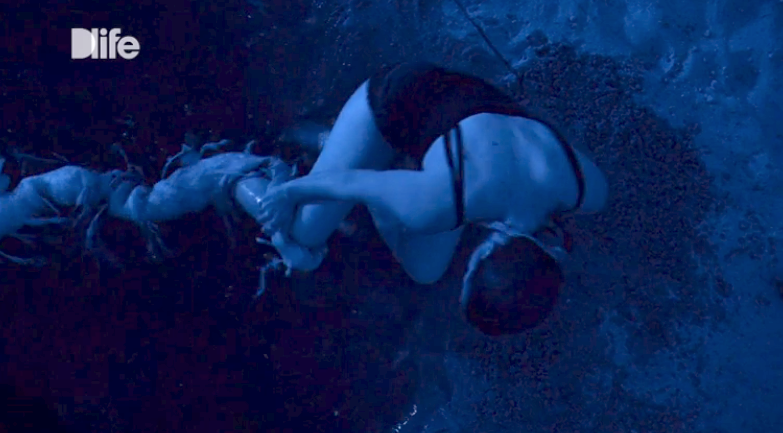 ほかに食物が見つからないシモンズは、ふたたび件の池に潜りその生物を狩って腹の足しにする。