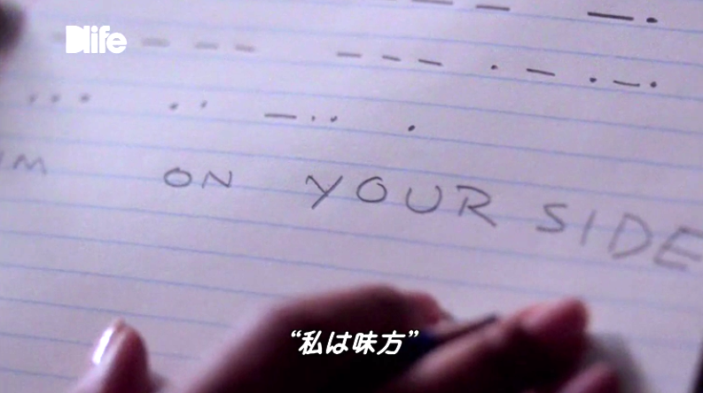 今現在も彼女は盗聴されており、指のリズムはモールス信号であることを瞬時に察知し、メモに書き留める。シェルビーがおくったメッセージは「私は味方」。