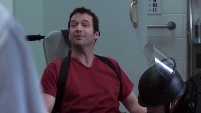ジョーは人質のひとりを診察台の上にくくりつける。何かをしでかすと危惧したライアンはジョーの話に同調してみせる。