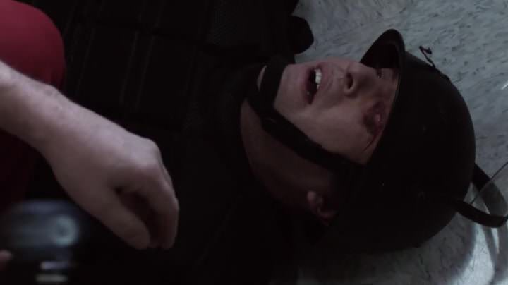 人質が無事ひとり解放されると、ライアンはジョーの要求通り手錠をはめて入室する。するとジョーはライアンをスタンガンで襲う。