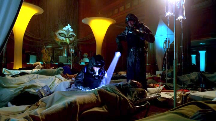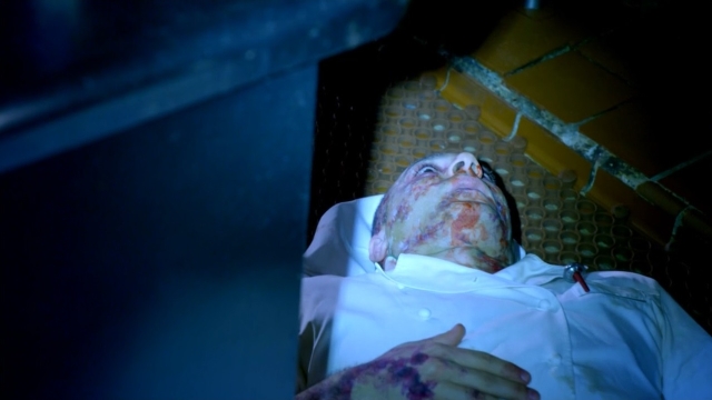 クルーのひとり・フランキーは船内で蹴躓き転んでしまう。その拍子に防護マスクがはずれ、遺体と接触してしまう。