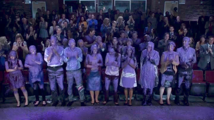 舞台ではドロドロの液体をかぶった観客が唖然。