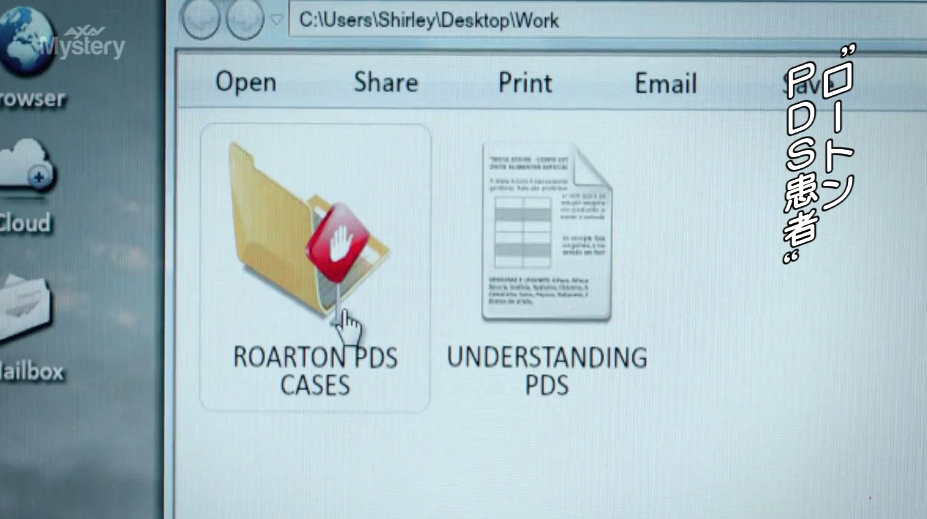 母親の愚行を疑うフィリップは、シャーリーのPCを盗み見る。そこに「ロートンのPDS患者」とネームされたファイルを見つけ、母がPDS支援に加担している確証を得てしまう。