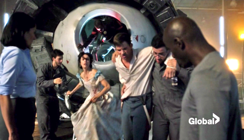 軍服に身をまとったワイアットとルーファス、ドレスを来たルーシーはタイムマシンに乗り込み時間移動の時を迎える。