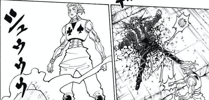 ここで何かに気付くヒソカ - とらえたクロロにとどめを刺すも、コンバートハンズによる偽物