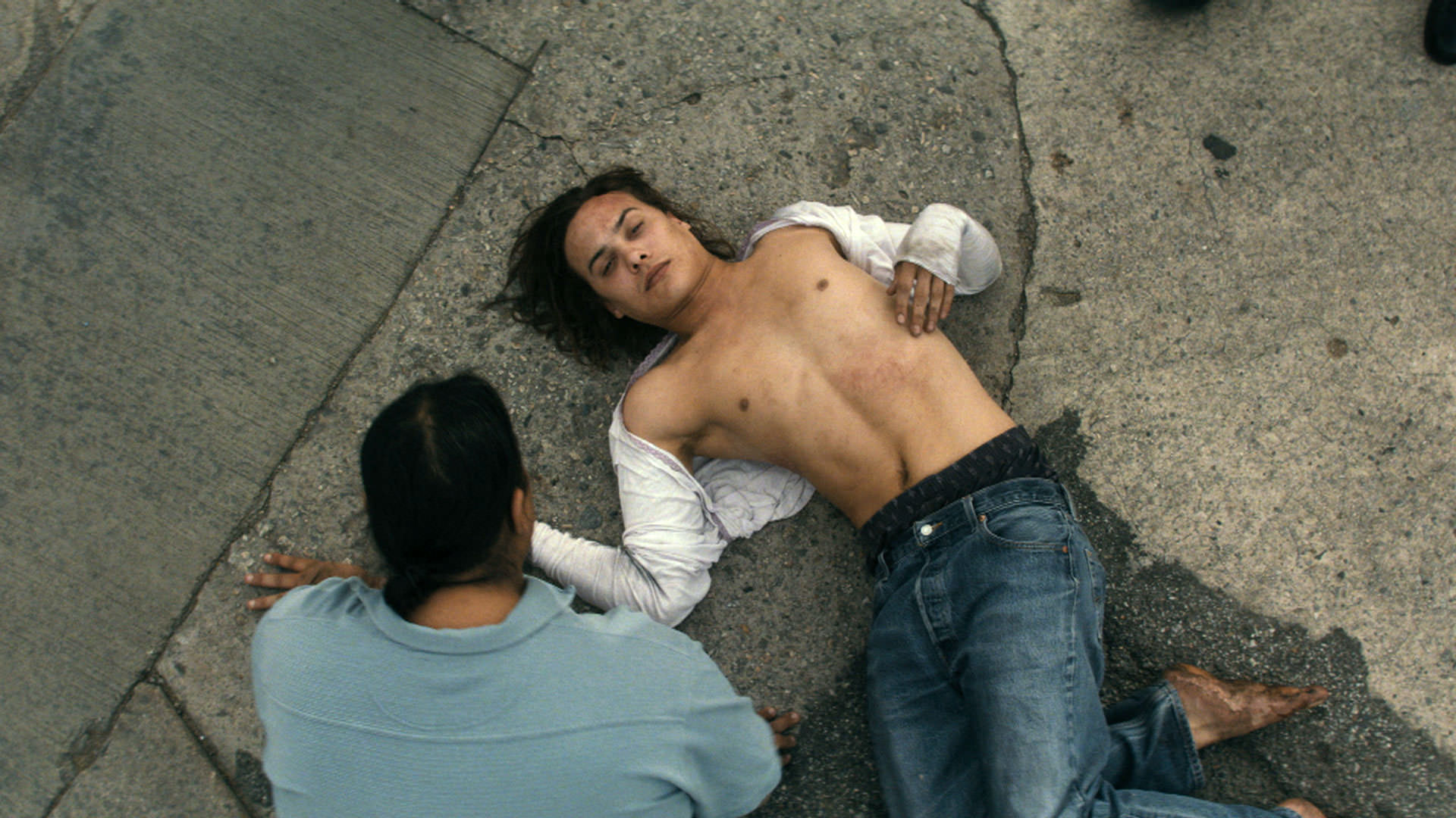 道路で救助隊に処置されていた男が急に救助隊員に襲いかかる。男は取り囲んだ警察によって銃弾を浴びせられるが、それでも立ち上がる様相が映しだされていた。