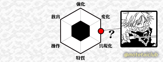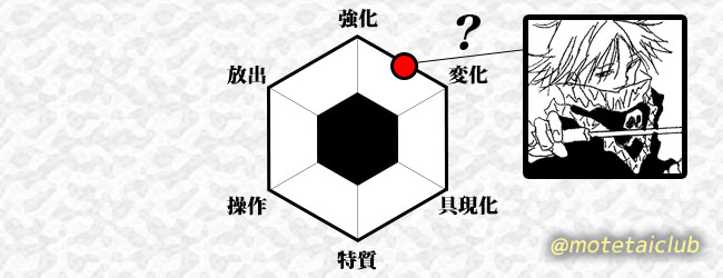 - 強化よりの変化系能力者であり、放出要素も多少得手で範囲性が高い。