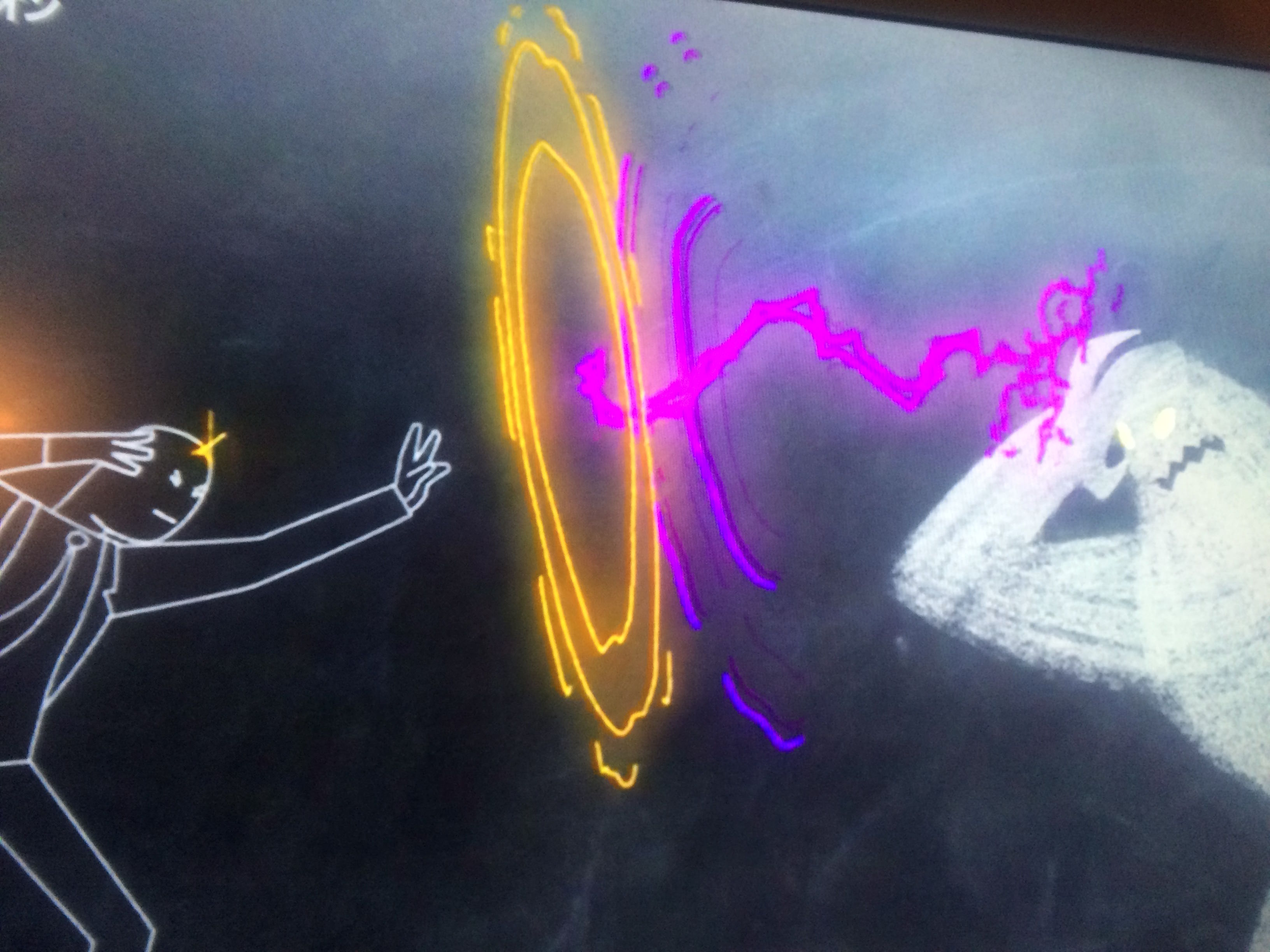 理性的なデヴィッドが「教室を思い浮かべてみろ」というと、ふたりのデヴィッドは大きな黒板のある教室に移動する。
