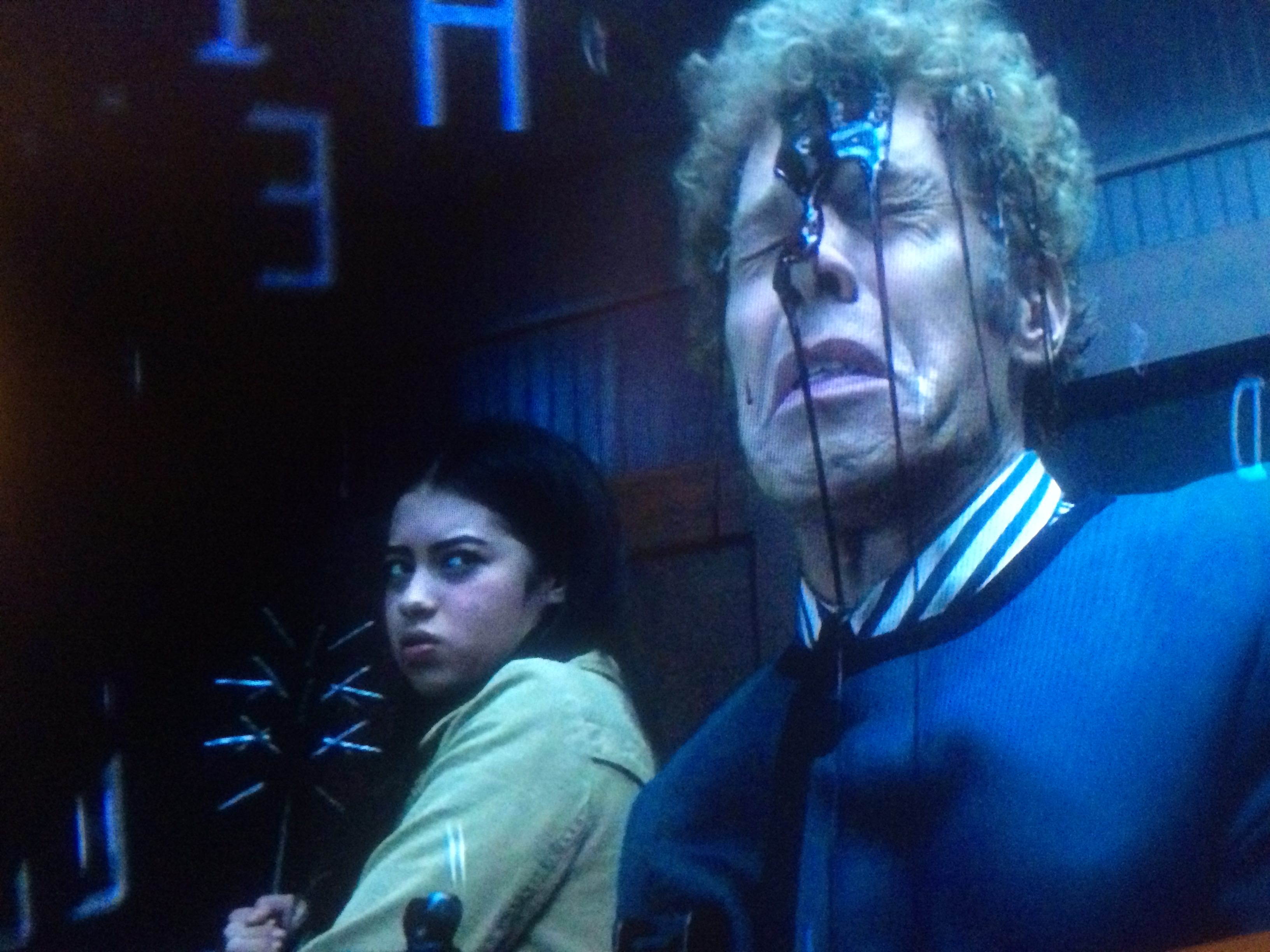 デヴィッドに取り付けられた装置はいささか不安定で、ときおり「怒りんぼ少年」の幻覚が見え怯えるデヴィッド。