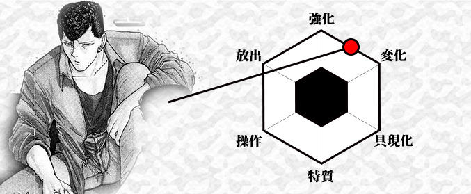 発展途上中の作品序盤では念弾の使用回数に制限があることから考えても放出がメインではなく、覚醒することで本来の力を発揮できるようになったことから、強化系がベースにあるものと考えました。そこから幽助は放出よりの強化系と分類しました。