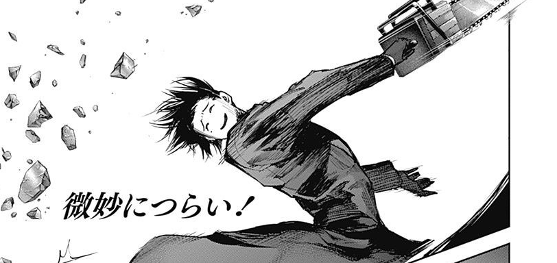 「:re」 以前の本筋で戦って以来はじめて、再び有馬貴将と対峙することになった ハイセ(カネキ)。しかし有馬の強さが圧倒的すぎてまったく歯がたってません。