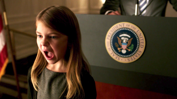 何事かと語りかける大統領だが、カサンドラはカメラの方へ向き直ると突如、大音量の奇声をあげる。一同騒然。