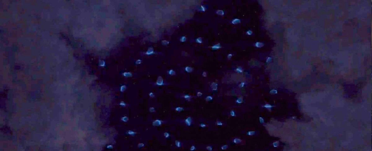 何が起きているか分からない一行だが、突如夜空が青白く光る。