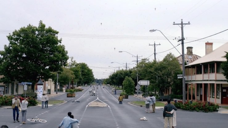 ジェニファーをはじめ子供たちは宙に浮かび天に登っていく。大人たちはくちぐちにこの名を叫び慌てふためく。やがてすべての子供の姿が消えると大人たちが呆然と立ち尽くす姿だけが残された。