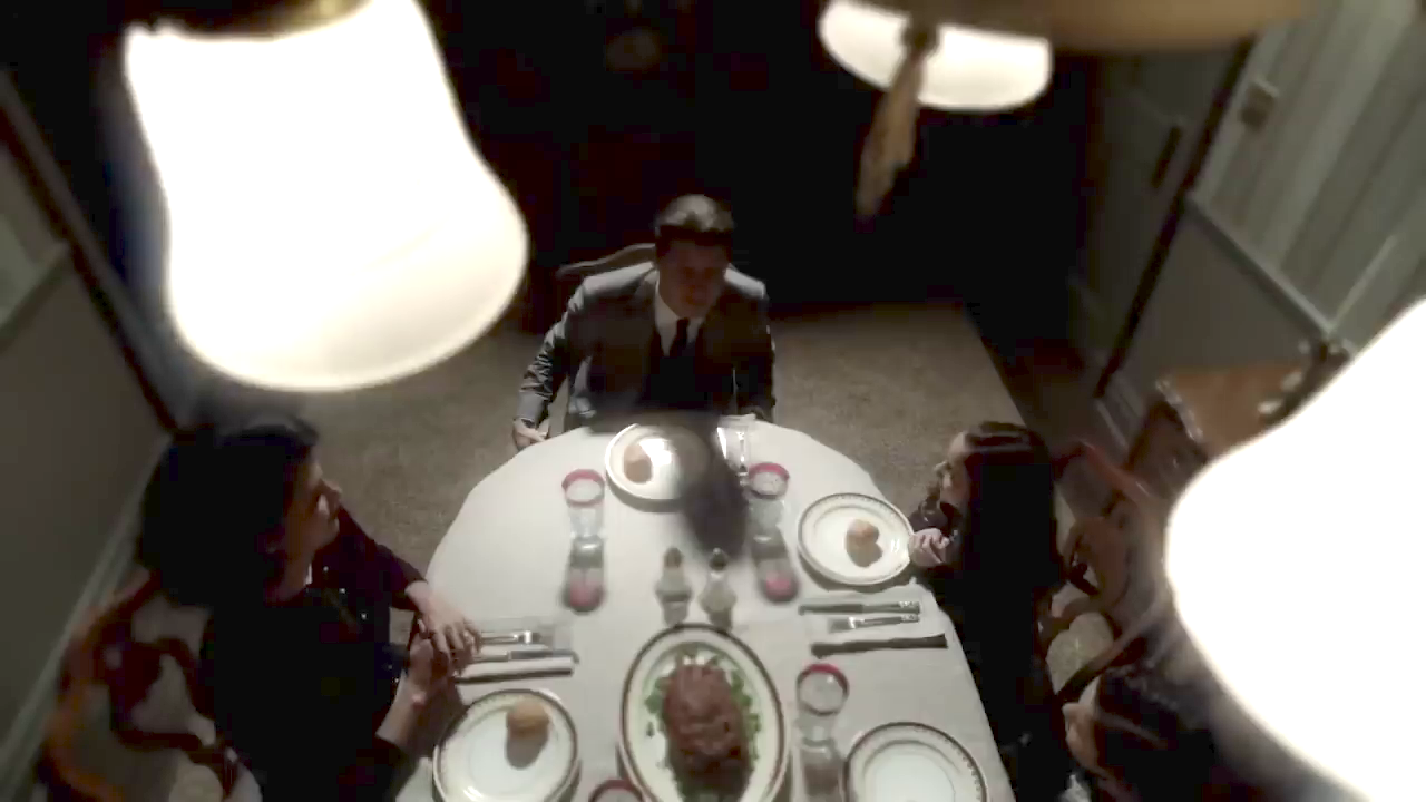 家族で団らんを楽しもうとすると、部屋の明かりが点滅し始め家族がひとりひとり消えていく。