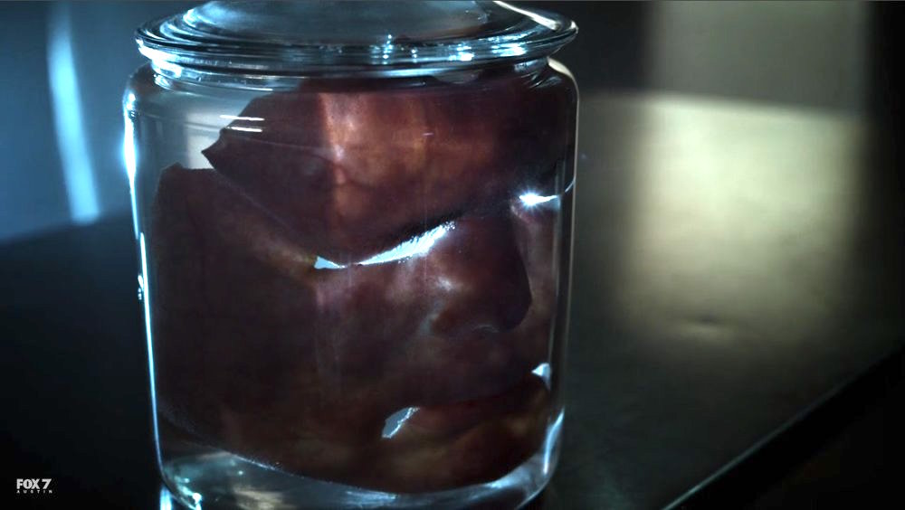 サイモンはちょうど裏稼業として女性の顔を剥ごうとしているところだった。片隅にすでに剥がれた人の顔を発見したバーンズは怒り心頭。