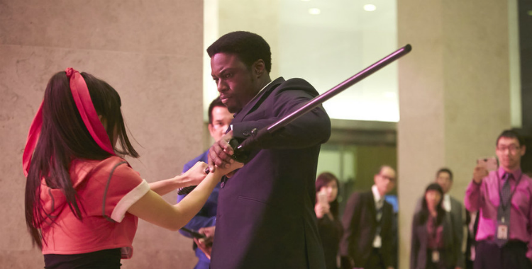 警備員たちを片っ端からのしてしまうミコ、そこへ黒人の男・ハリスが現れる。ハリスの体術は凄まじく、ミコはやられカタナを奪われてしまう。