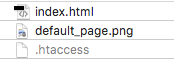 通常であれば、必要なファイルはまだなにもありません。あるのは下記画像のような3つのファイル。これは前項で示した、エックスサーバー側が用意した表示のためのファイルです。必要なければ「index.html」と「default_page.png」は削除しても問題ありません。