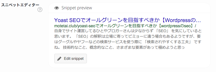 Yoastツール内のスニペットエディターから「Edit snippet」をクリックして入力しましょう。